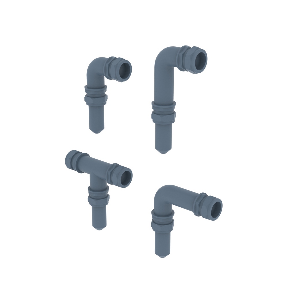 車両などで電源ケーブルの接続に使われるパイプを再現するディテールパーツセットです。4種類のパイプを各10個ずつ、計40個をセットします。