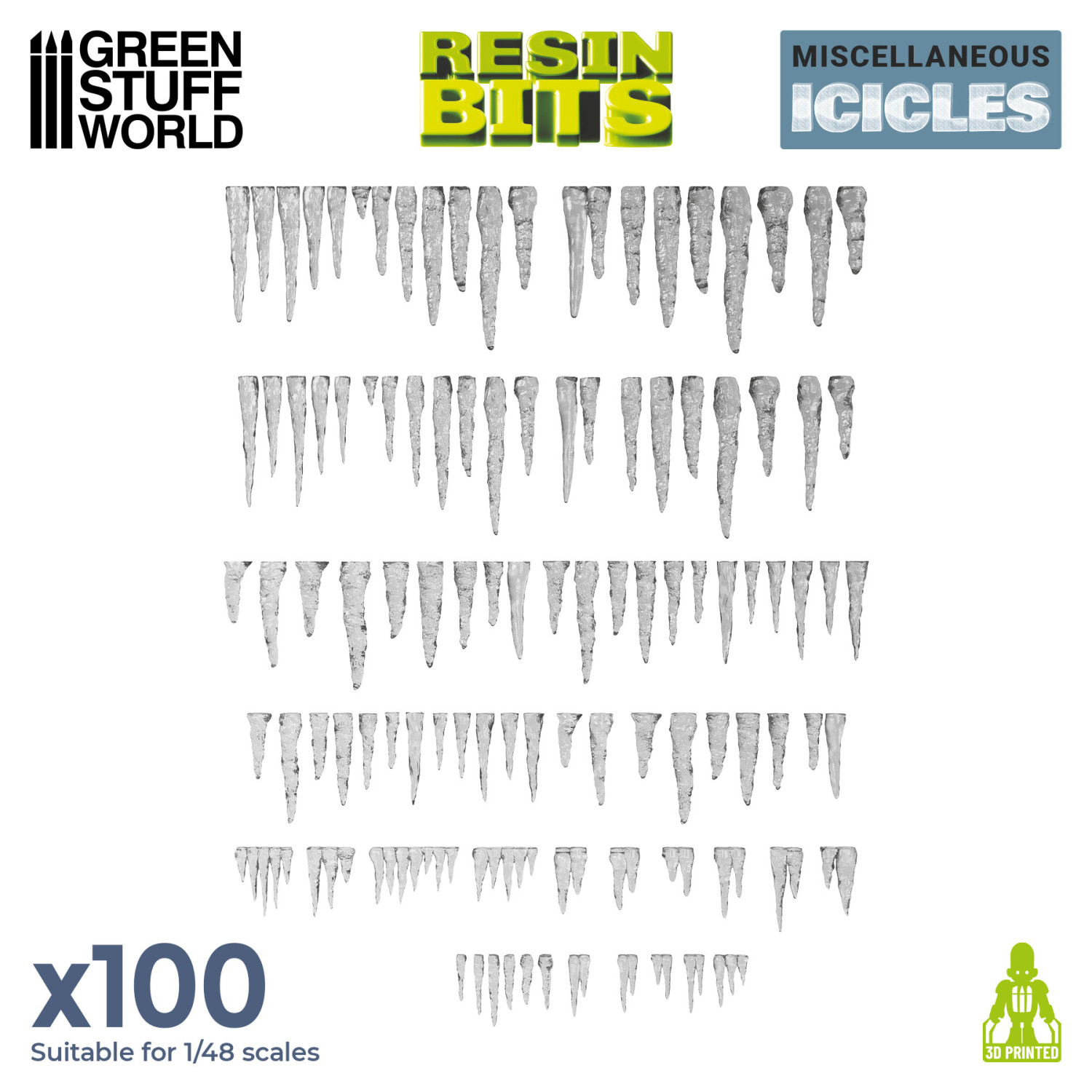 ジオラマやミニチュアシーンに 氷や洞窟のリアルな雰囲気 を加える、3Dプリントのレジン製鍾乳石・鍾乳柱&氷柱セットです。