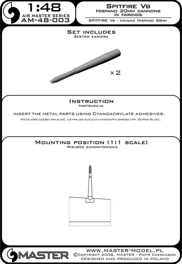 MASTER[AM-48-003]Supermarine Spitfire Vb - Hispano 20mm cannons in fairings
