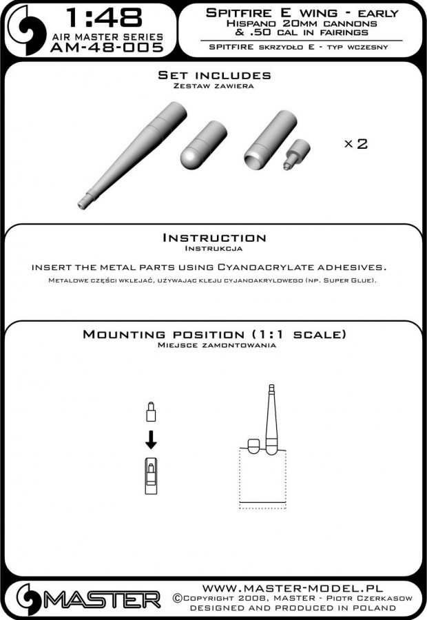 MASTER[AM-48-005]Supermarine Spitfire E wing early - Hispano 20mm & .50cal in fairings (two versions)
