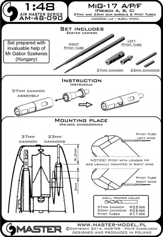 MASTER[AM-48-090]MiG-17A/P/F (Fresco A, B, C) - 37mm and 23mm gun barrels set & Pitot Tubes