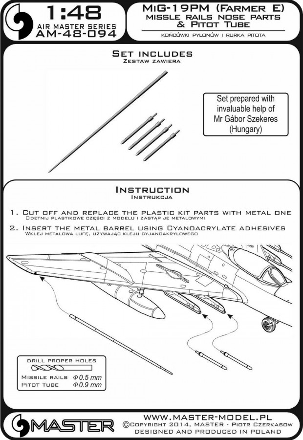MASTER[AM-48-094]MiG-19PM (FarmerE) ? missle rails nose parts (4pcs) & Pitot Tube