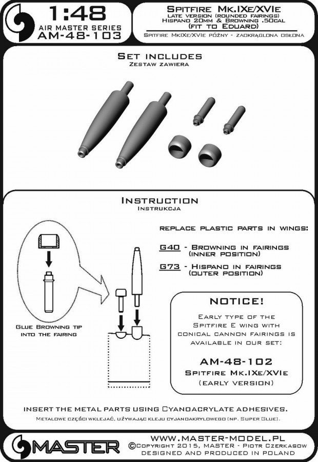 MASTER[AM-48-103]Spitfire Mk.IXe/XVIe late version (rounded fairings) - Hispano 20mm & Browning .50cal in fairings (fit to Eduard)