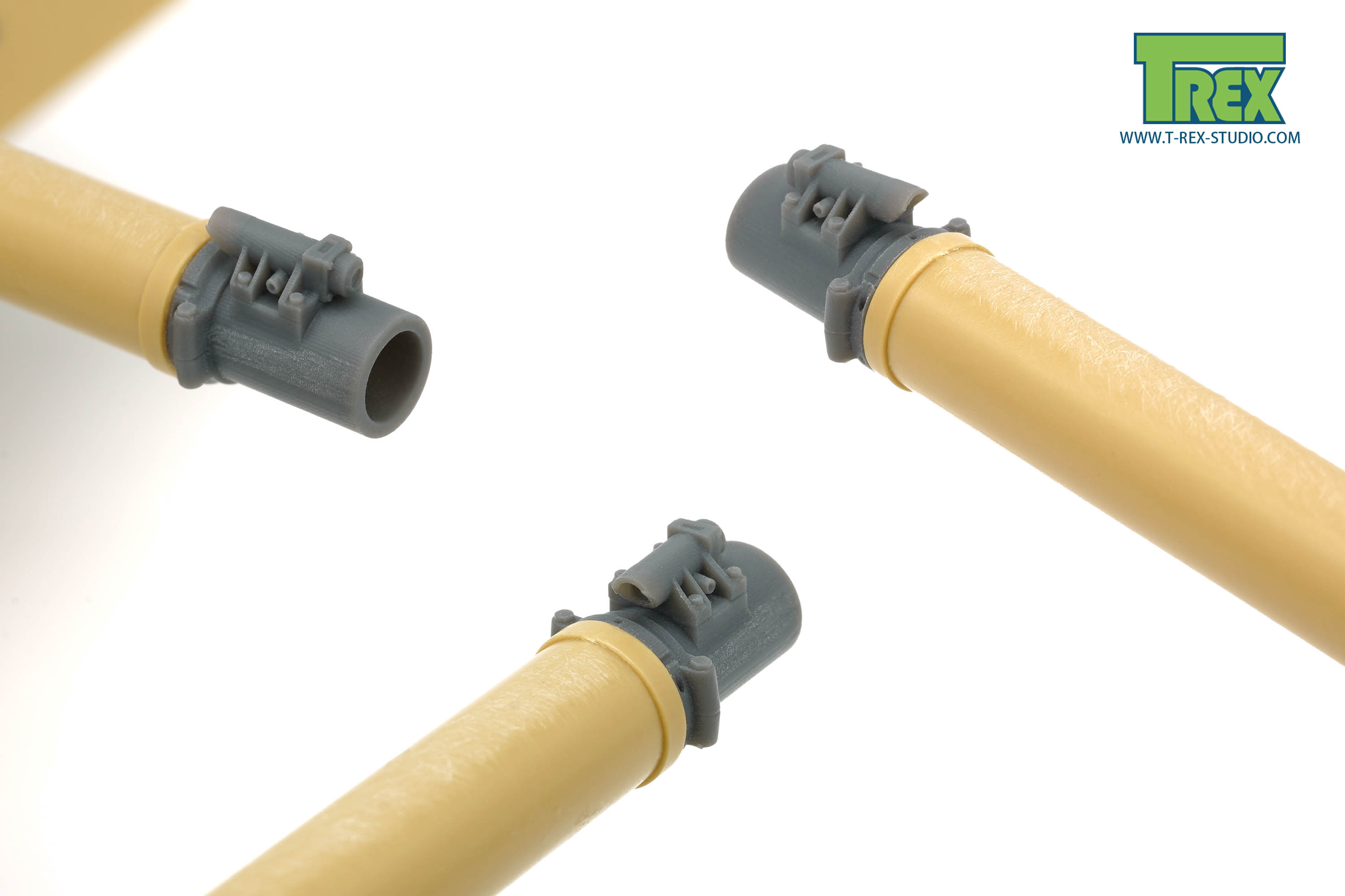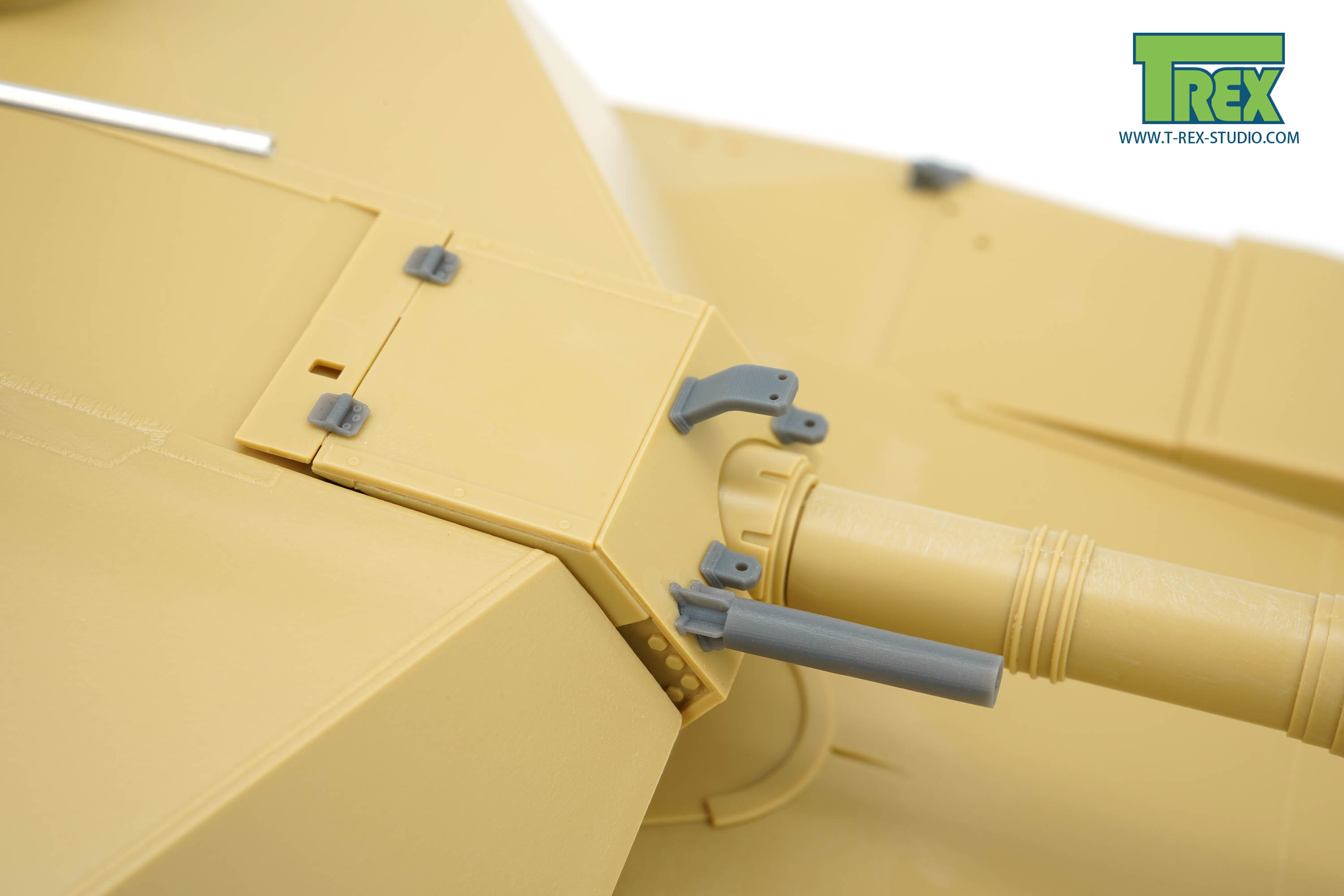 砲口照合センサー付120mm砲マズル、環境センサー、アンテナ基部、同軸機銃口、給油口、牽引フック、各部のヒンジやブラケット、ハンドルなどの細部を効果的にディテールアップできます。アルミ挽き物製のブローニングM2 .50cal(12.7mm)重機関銃銃身も付属します。