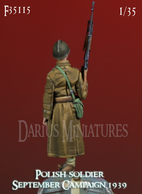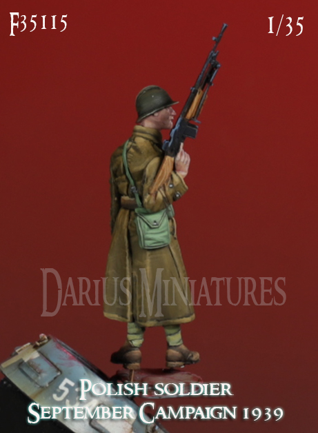 ヘルメットを被り長コートを着用、ブローニングWz.1928軽機関銃を右手に持って立つ兵士をモデル化しました。ガスマスクケースやマガジンポーチなどの装備品も精密に再現しています。