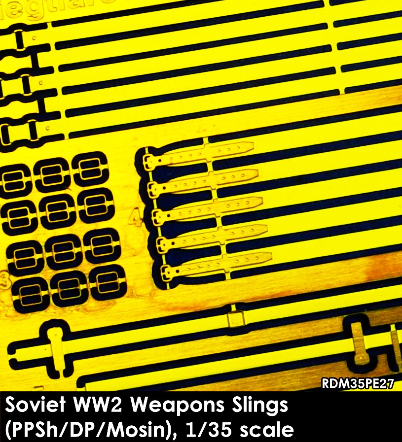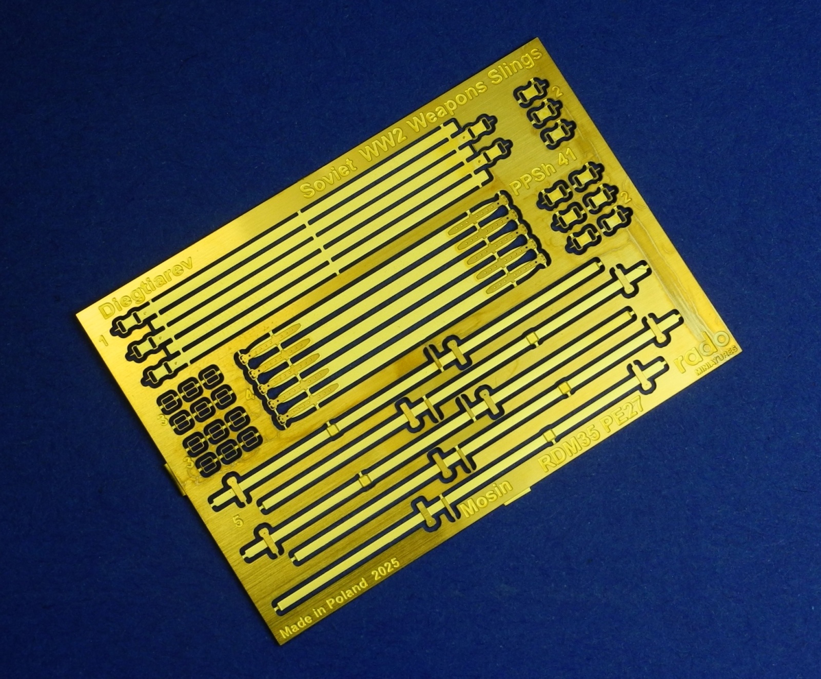 第二次大戦ソビエト軍が使用した小火器類のスリング(負い紐)をシャープに再現できるエッチングパーツセットです。