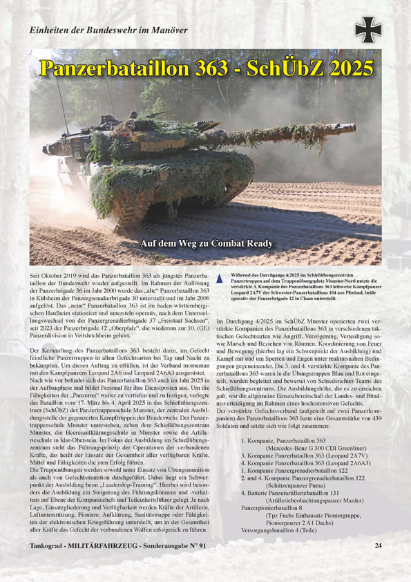 ドイツから陸上兵器と軍事情勢を中心に編集された軍事専門誌がミリターフォールツォイクです。この欧州屈指の軍事専門誌の最新号となる通巻91号の特集は、ドイツ連邦軍の大型クレーン回収車両で、EH/W 200ビゾン、G-LTM、G-BKFなどの多装輪ARV車両を解説します。第2(GE)装甲擲弾兵師団の最後の師団戦闘演習となったジヒェレ・フェストゥンク87、最新型レオパルド2A7Vも参加した第25射撃訓練センターでの第363戦車大隊の訓練の模様、M113装甲兵員輸送車の後継車両となるアメリカ陸軍のAMPV、ベトナム戦争で多数が運用されたM274小型トラックなど、歴史的車両から最新情報に至るまで、今号も充実した内容となっています。