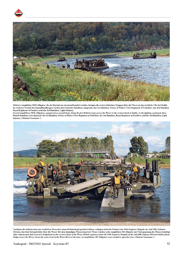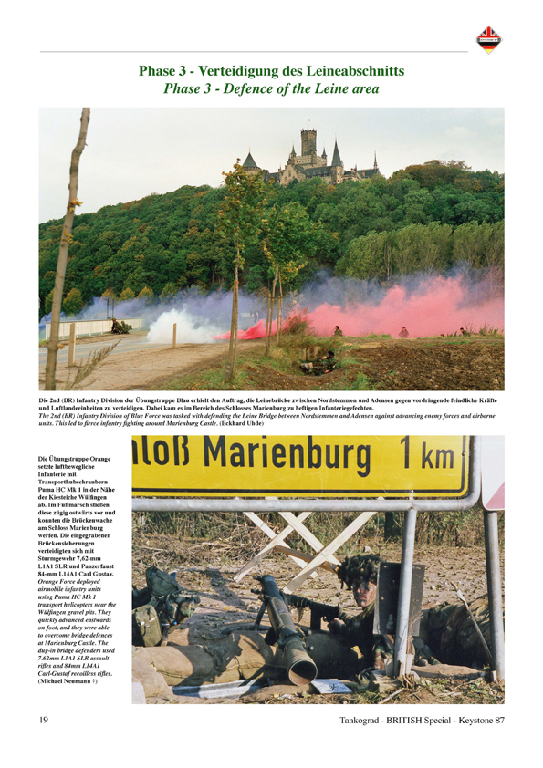 イギリスのヨークに司令部を置く第2(BR)歩兵師団は、冷戦末期における英国最大の師団でした。その重要な任務は、戦争発生時に英国軍のライン川駐留部隊を補強することにありました。深刻な緊張状態が発生し、差し迫った攻撃が予想される場合は、24時間以内に第一陣部隊がいちはやく欧州大陸へ展開することが可能でした。師団は遅くとも10日以内に西ドイツへ完全展開し、BAOR(英軍ライン川駐留部隊)の後方地域を確保する態勢を整えており、この状況はキーストーン87演習で訓練されました。