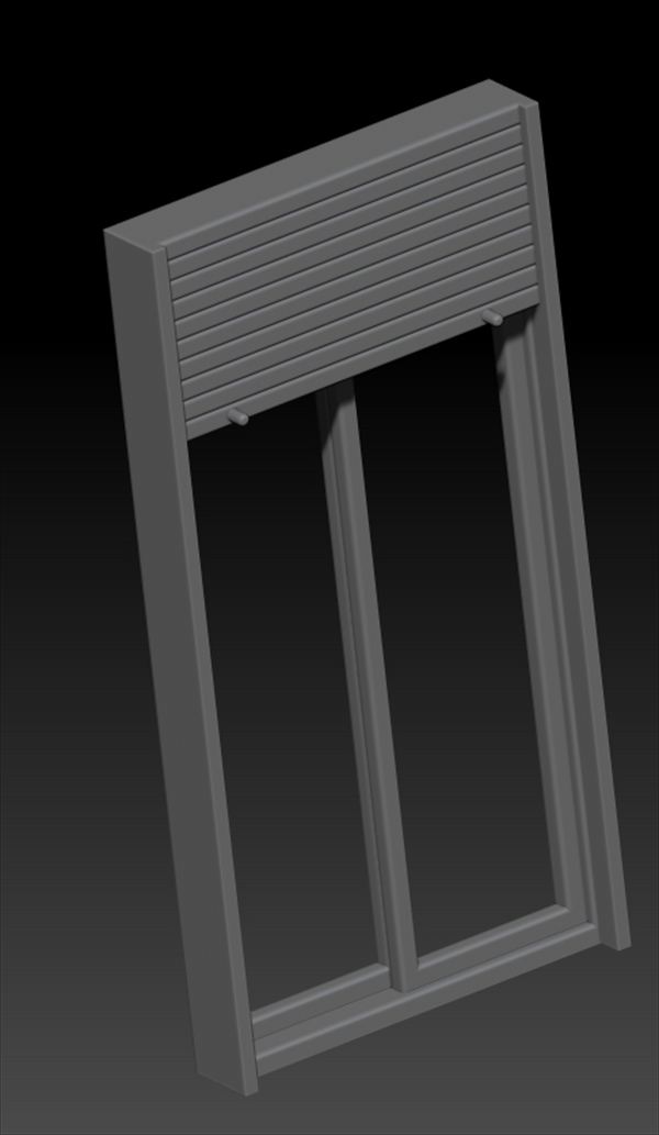 ヨーロッパの家屋に見られる、シャッターが付いたスライド式の縦長の窓を再現する3Dプリント製アクセサリーパーツです。サイズは6.6cm×3.5cmです。