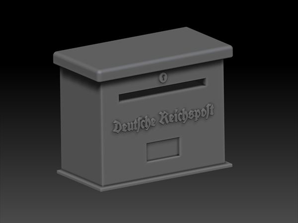 19世紀末から第二次大戦終結までドイツ国内の郵便業務を行なった帝国郵便(ライヒスポスト)の郵便ポストを再現する3Dプリント製アクセサリーパーツです。シンプルな横型で正面にスリットが設けられた壁面取り付けタイプをモデル化しています。