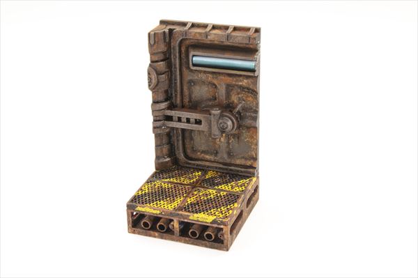 宇宙船の内部などのSF世界の環境を再現する3Dプリント製フィギュア用ベースです。密閉製の高いドアや下にパイプラインが通るグレーチングの床などが特徴の機械室の内部を再現しています。