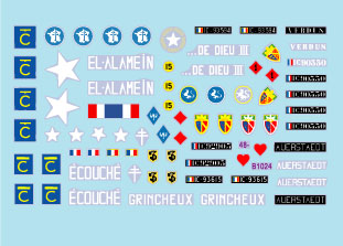 1945-1954年の第一次インドシナ戦争でベトナム、カンボジア、ラオスに派遣されたフランス軍のM5A1スチュアート軽戦車のマーキングを収録しています。砲塔などが異なる初期生産車と後期生産車の全4種類をセレクトし、一部のマーキングはオプションも用意されています。