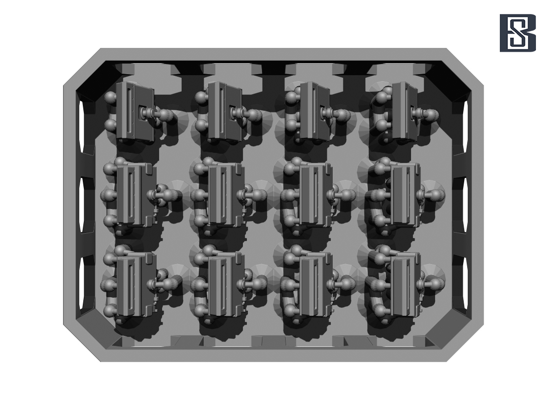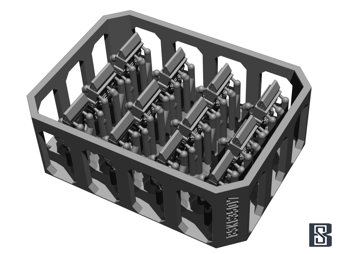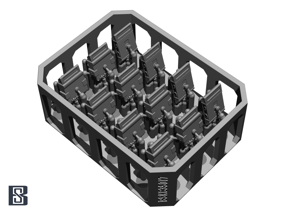 本体のみの状態を4個、取り付けホルダーに装着された状態を8個、計12個をセットします。3Dプリント製 12個入 ※本製品は未塗装未組み立てです。