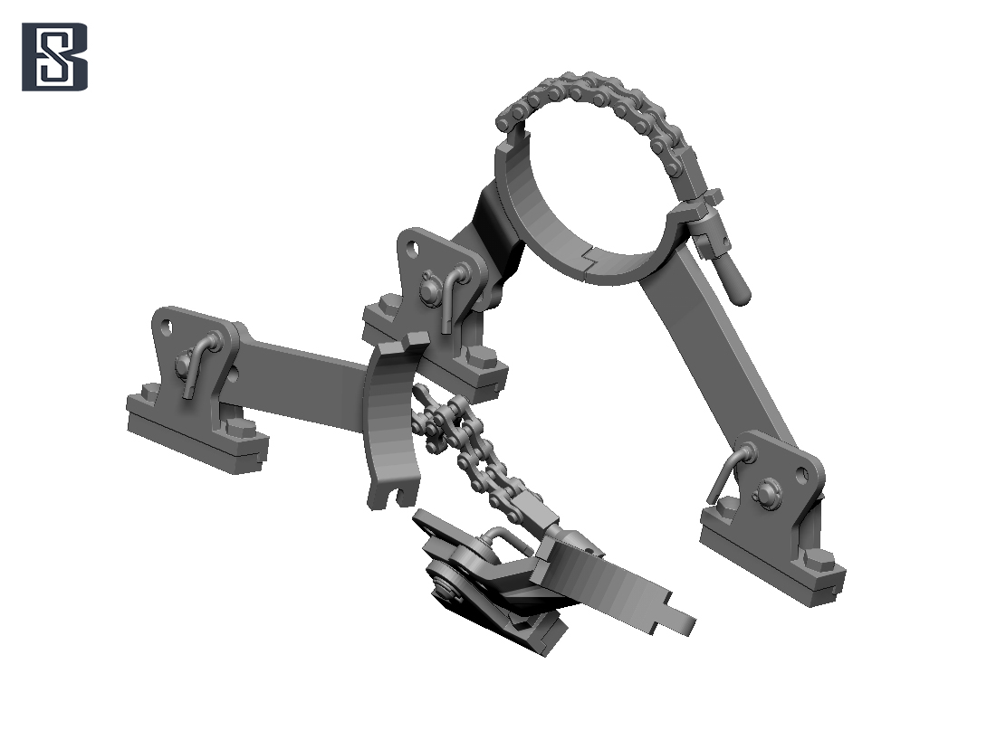 1943年11月から1944年2月まで車体後部右端に装備されていた、主砲のトラベリングクランプを再現します。クランプで砲身を固定した状態と、クランプを開放し左右に分離した状態の2種類を各1個ずつ、計2個をセットします。固定状態は一体成型、開放状態は3パーツ構成となっています。