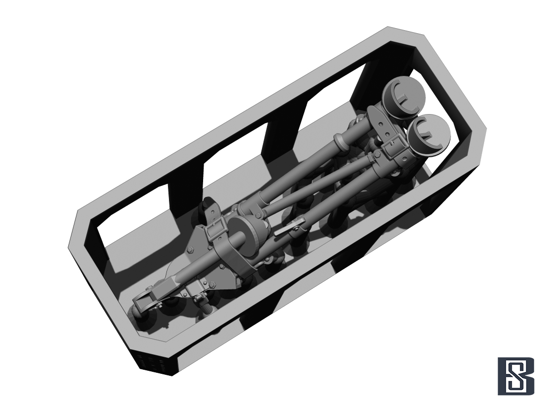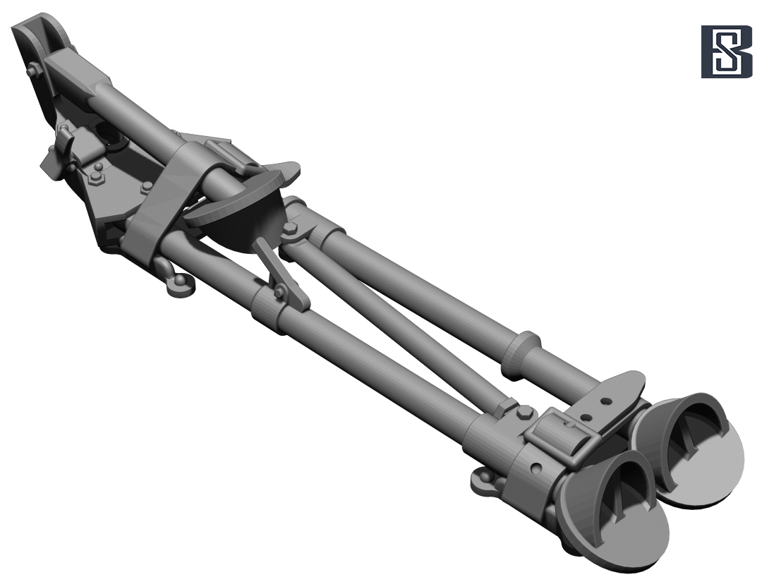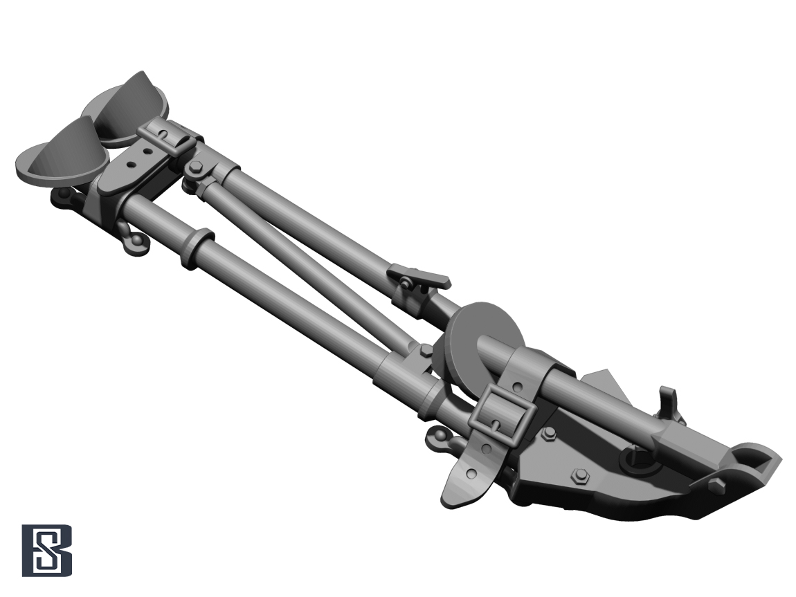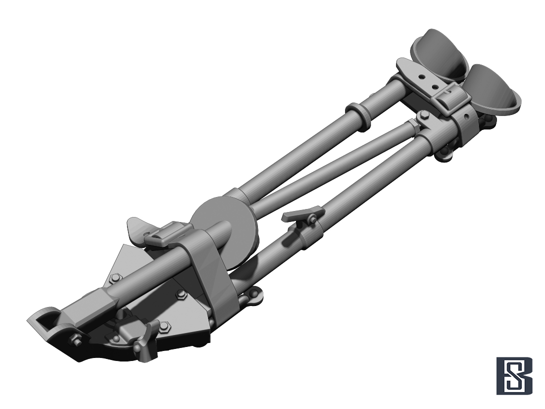 ライト類やライトガード、警笛、フェンダーステー、対空機銃ピントル基部、アンテナ基部、ジャッキ台、排気管カバー、シュルツェン架、各種車外装備品のクランプやホルダーなどを、3Dプリントにより正確かつ精密に再現します。また折り畳んだ状態の機銃三脚架も付属します。