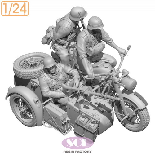 SOL MODEL[MM907]1/24 WWII ドイツ KS750軍用サイドカー(乗員3体付)