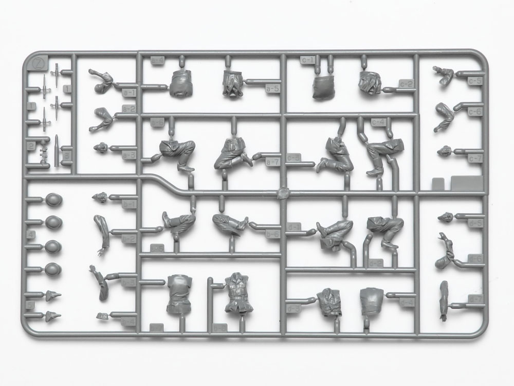砲手や指揮官など、4名の兵士は大戦中期に多く見られる軍装でセット。徹甲弾と榴弾、薬きょうに加え、砲弾ケースも用意。ケースはフタの開閉が選べ、砲弾を1発取り出した状態にも仕上げられます。