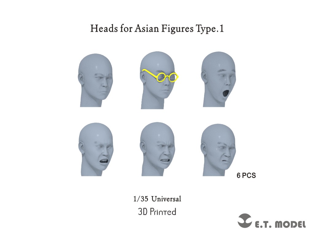 E.T.MODEL[P35-339]1/35 汎用 アジア系フィギュアヘッドセット タイプ1(6個入) [ご注文締切日 12月19日(金)2026年3月入荷予定]