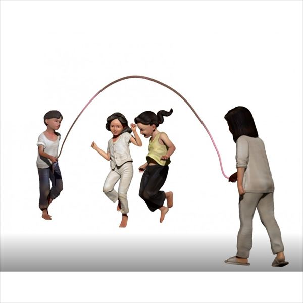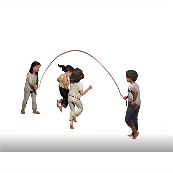 縄跳びで遊ぶベトナムの街の子供たちを再現するフィギュアセットです。縄を回す少年と少女、縄を飛ぶ少女2体、計4体をセットします。