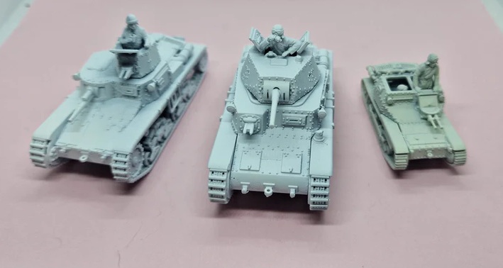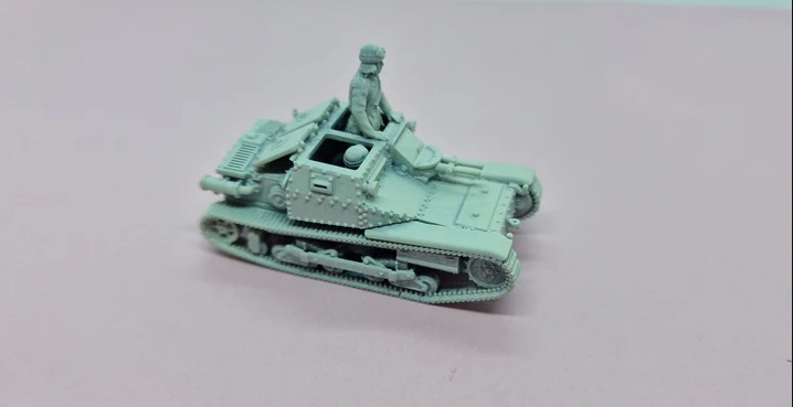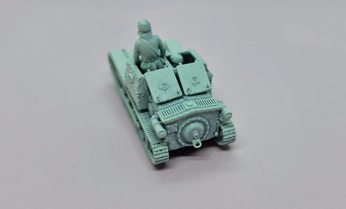 第二次大戦勃発時にイタリア軍戦車部隊で最も多く使われていた車両、カルロ・ベローチェ35(後にL3/35と改称)を再現する3Dプリント製フルキットです。フィアットMod.14/35 8mm機関銃を2丁装備したタイプをモデル化しました。乗員フィギュア2体も付属します。