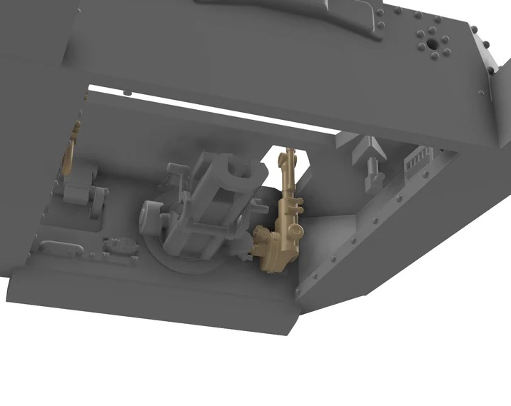 キットは12k高解像度の3Dプリント技術により戦闘室内部まで精密に再現されています。車体に搭載するジェリカンや、車長、砲手、操縦手の計3体の乗員フィギュアも付属します。