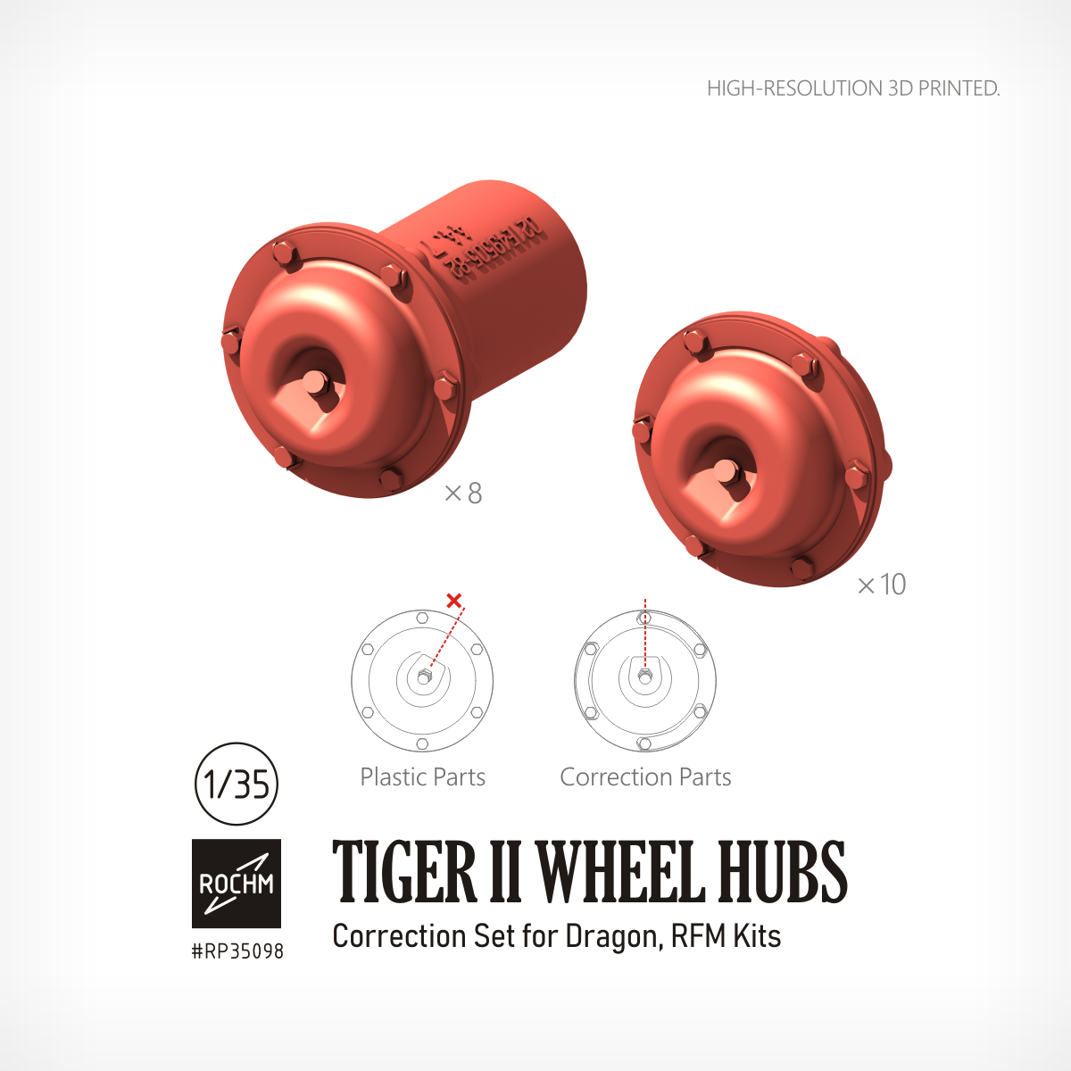 第二次大戦ドイツ軍のキングタイガー(タイガーII)重戦車のホイールハブを修正するディテールパーツセットです。ドラゴン/ライフィールドモデル製キットに対応します。