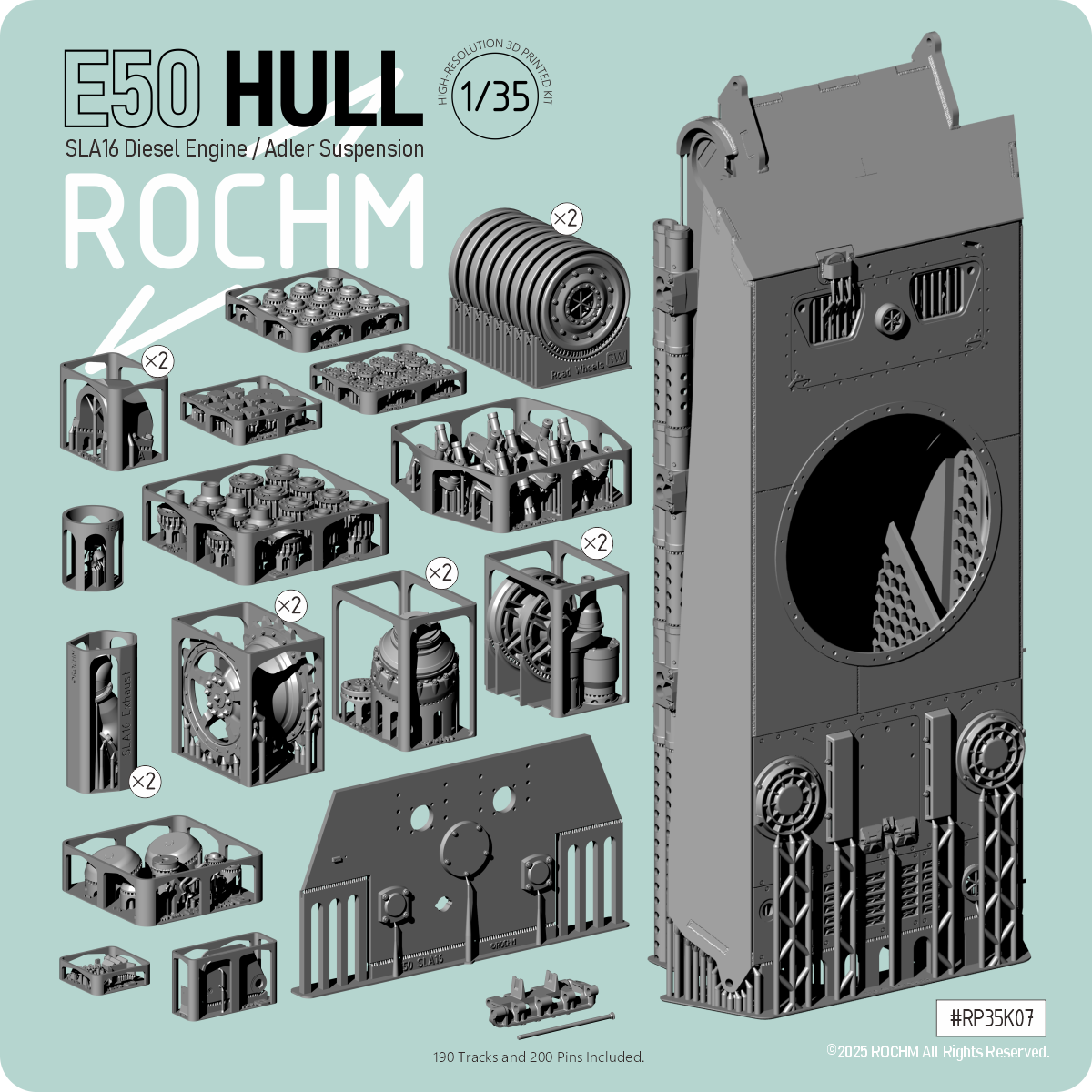 第二次大戦ドイツ軍の計画戦車E50中戦車の車体をフル再現したコンバージョンセットです。トランペッター/ロケットモデルズ製キットなどに対応します。