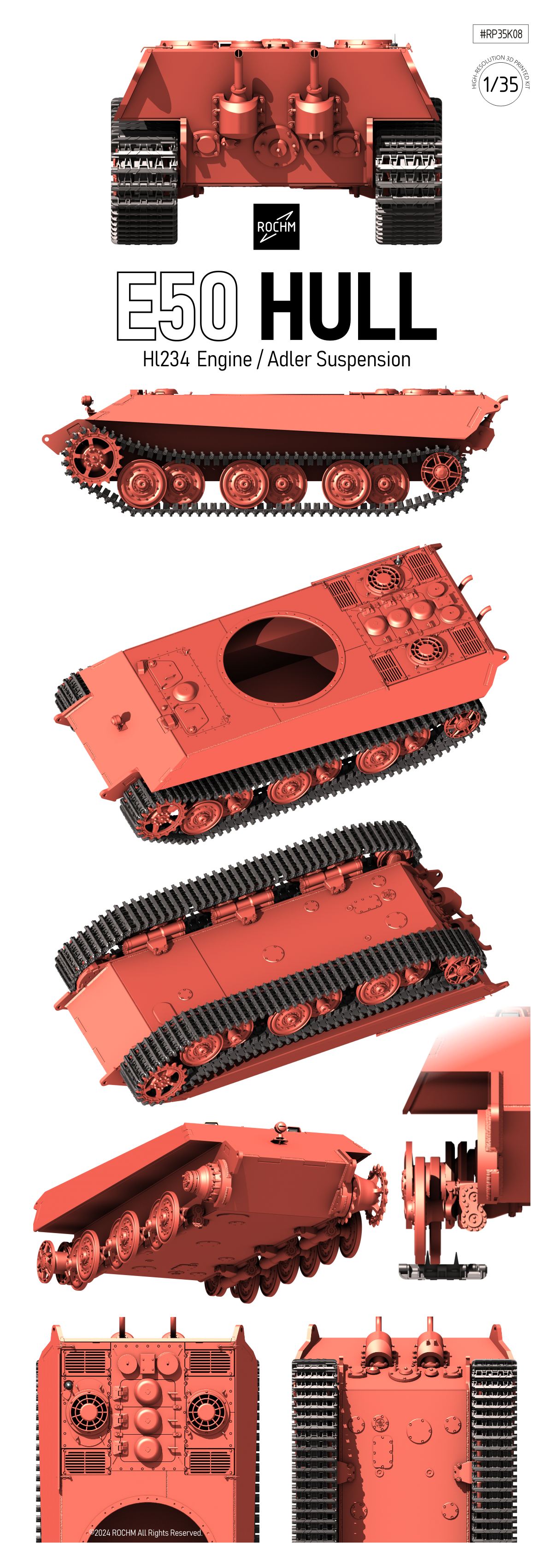 第二次大戦ドイツ軍の試作戦車E50中戦車の車体をフル再現したコンバージョンセットです。トランペッター/ロケットモデルズ製キットなどに対応します。
