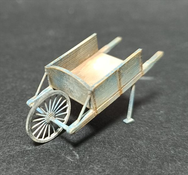 ヨーロッパの田舎などに見られる、一輪式の手押し車(猫車)を再現する3Dプリント製アクセサリーパーツです。