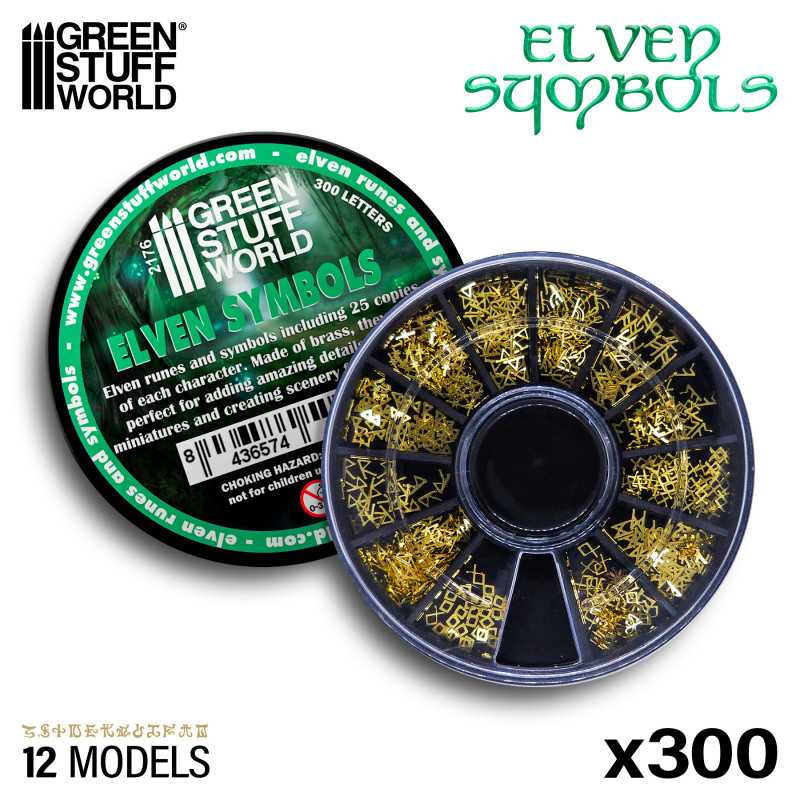 ・真鍮製のエルフをテーマにしたルーン・シンボル・サインが300個入ったセットです。12種類のデザインがそれぞれ25個ずつ、便利な仕切り付きケースに収められています。