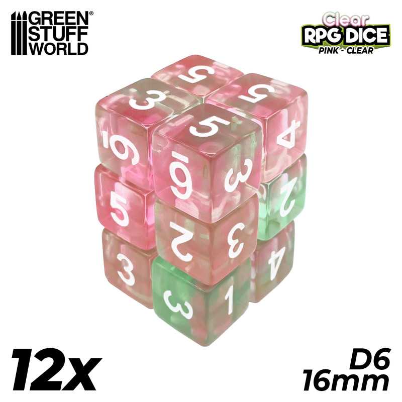 グリーンスタッフワールド[GSWD-4077]6面体ダイス16mm クリアーピンク(12個入) [NEW PRODUCTS]