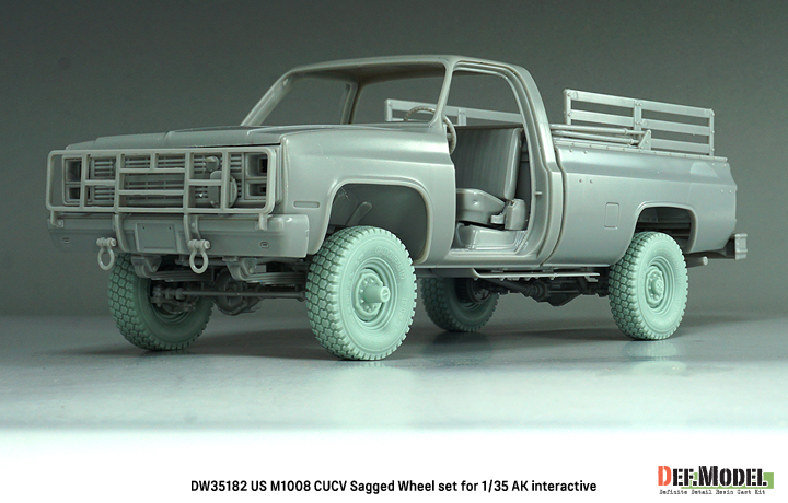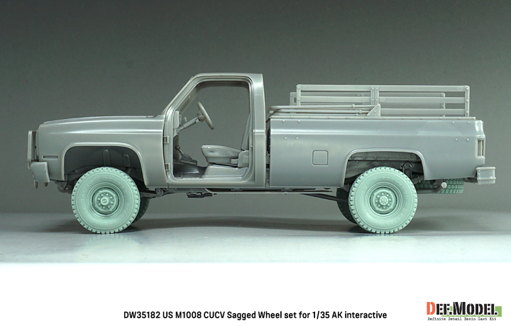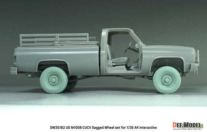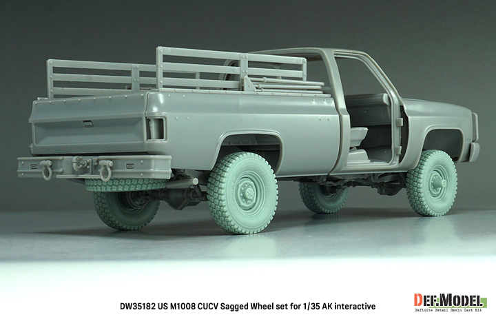 アメリカ陸軍で1980-90年代に民間のシボレーピックアップトラックを軍用化したM1008 CUCVのホイールを再現する自重変形タイヤセットです。AKインタラクティブ製キットに対応します。