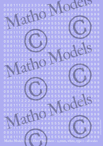 マソモデル[MH80050]スケールフリー 数字デカール 高さ2.5mm 白色 タイプ1 [ご注文締切日 1月9日(金)2026年2月入荷予定]