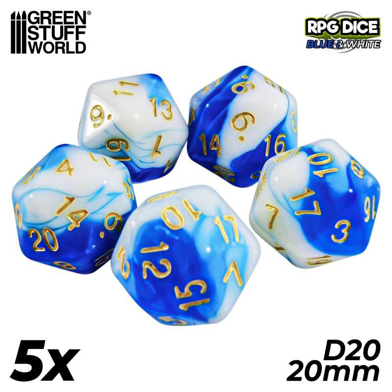 グリーンスタッフワールド[GSWD-2677]20面体ダイス20mm ブルーホワイト(5個入)