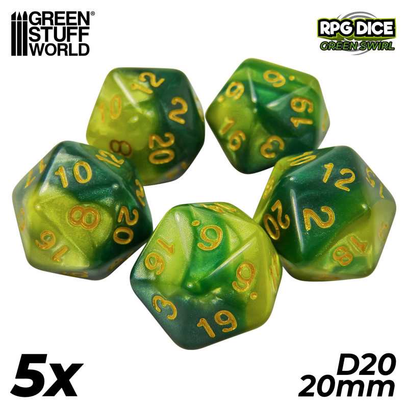 グリーンスタッフワールド[GSWD-2681]20面体ダイス20mm グリーンスワール(5個入)