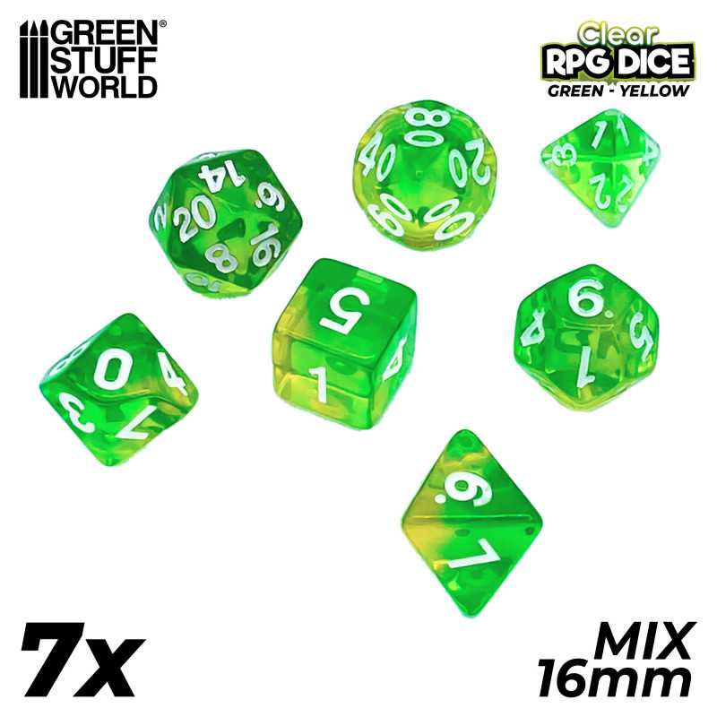 グリーンスタッフワールド[GSWD-3398]ダイスミックスセット16mm クリアーグリーン×イエロー(7個入)