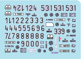 1945年のベルリン防衛戦を戦った車両のマーキングを収録します。第1弾は第11SS義勇装甲擲弾兵師団「ノルトラント」所属車両のSd.Kfz.223軽装甲無線車、Sd.Kfz.250/7 Ausf.Bノイ自走迫撃砲、Sd.Kfz.251/3 or /11 Ausf.D装甲兵員輸送車、Sd.Kfz.3Bフォード・マウルティア、Kfz.1 VWキューベルワーゲンの各1種類、計5種類をセットしています。またナンバープレートのスペア番号やステンシルもセットされ、任意の車体番号で製作することも可能です。