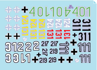 第二次大戦ドイツ軍のタイガーI重戦車中期型を装備した部隊のマーキングを収録します。第501重戦車大隊(1944年3月ロシア)、第502重戦車大隊(1944年初めロシア)、フンメル重戦車中隊(1944年末オランダ)、第503重戦車大隊ベーケ重戦車連隊(1943/44年冬ロシア)、第101SS重戦車大隊(1944年春フランス)の所属車両、計5種類をセットしています。またスペア番号やステンシルもセットされ、複数のオプションを選択して製作することも可能です。
