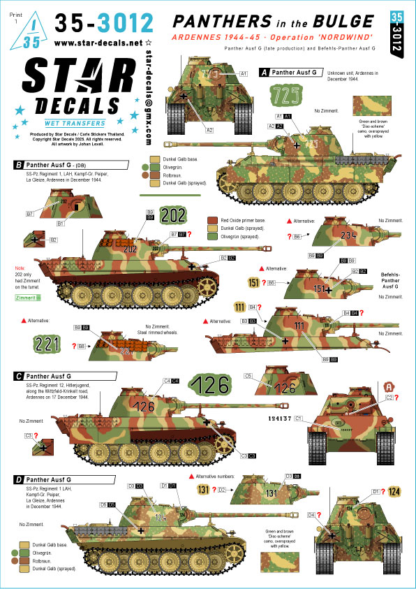 STAR DECALS[SD35-3012]1/35 WWII ドイツ バルジの戦いのパンサー戦車 アルデンヌ1944/45年 ノルトヴィント作戦 パンサー戦車G型後期型/パンサー指揮戦車G型 [ご注文締切日 1月30日(金)3月入荷予定]