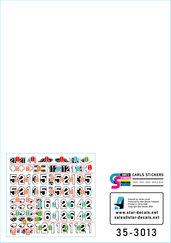 第二次大戦ドイツ軍のパンサー戦車D型の1943年時のマーキングを収録します。第51戦車大隊(1943年夏)2種類、第52戦車大隊(1943年夏)、大隊不明、グロースドイッチュラント装甲擲弾兵師団パンサー大隊(1943年夏以後)の計5種類をセットしています。またスペア番号やステンシルもセットされ、複数のオプションを選択して製作することも可能です。