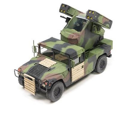 台湾AFVクラブから久々の完全新金型製品が登場!各国に配備され、ウクライナ戦線でも活躍する、車載式の対空システムです。360度回転可能な砲塔に2基の4連FIM-92 スティンガーミサイル発射筒と1基のM3P 50口径機関銃を搭載する本システムは、比較的低高度の標的に対して高い命中率をもち、近年UAVに対する対抗手段としても注目されています。ミサイル発射筒や砲塔本体は内部ディテールまで再現。射出用推進剤を含むスティンガーミサイル本体も付属します。砲塔を搭載するハンヴィー4輪駆動車も新金型となっており、車体下面部も含め精密に再現。バンパーを2種類から選択できます。