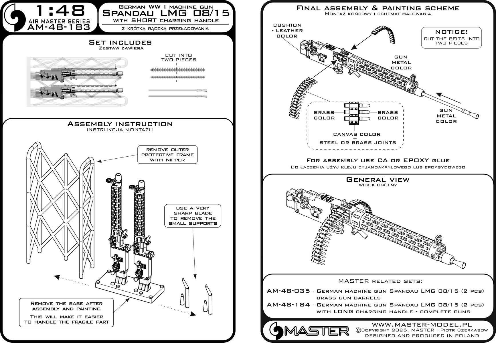MASTER[AM-48-183]1/48 WWI ドイツ シュパンダウLMG 08/15機関銃 短装填ハンドルタイプ(2個入)
