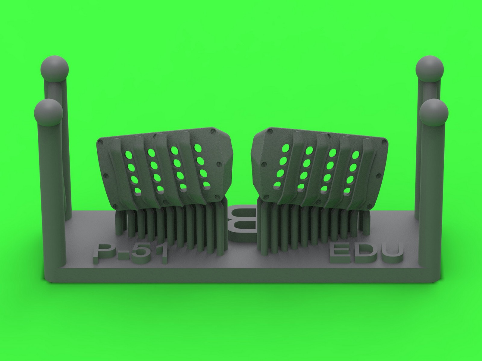 第二次大戦アメリカ軍のP-51ムスタング戦闘機の機首下部左右のキャブレターエアフィルターカバーパネルを再現するディテールパーツです。エデュアルド製キットに対応します。