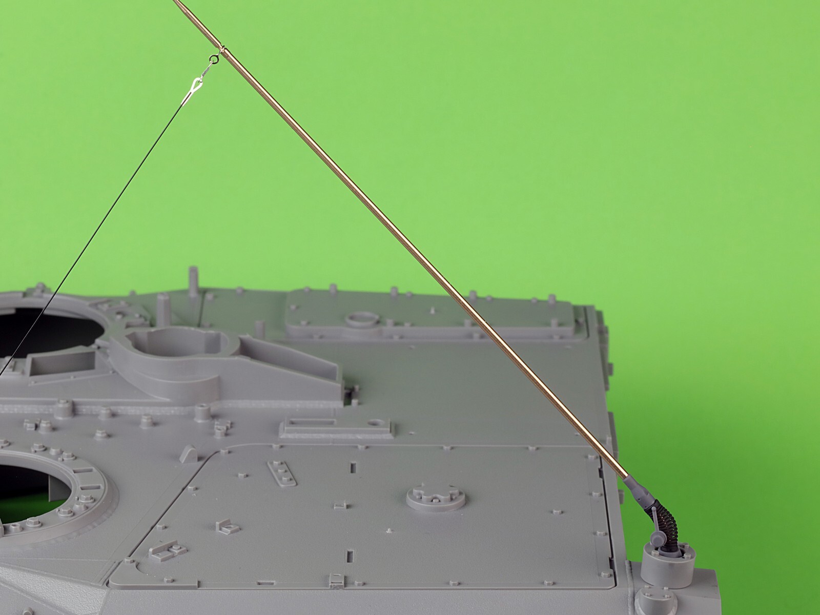 ドイツ連邦軍などで運用されるレオパルド2A7V主力戦車などのVHF 3088VM無線機用アンテナロッドを再現するディテールパーツです。ダスヴェルク製キットなどに対応します。