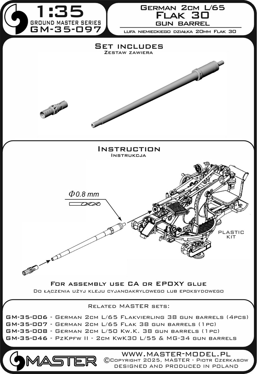 MASTER[GM-35-097]1/35 WWII ドイツ 2cm L/65 Flak 30対空機関砲砲身(汎用)