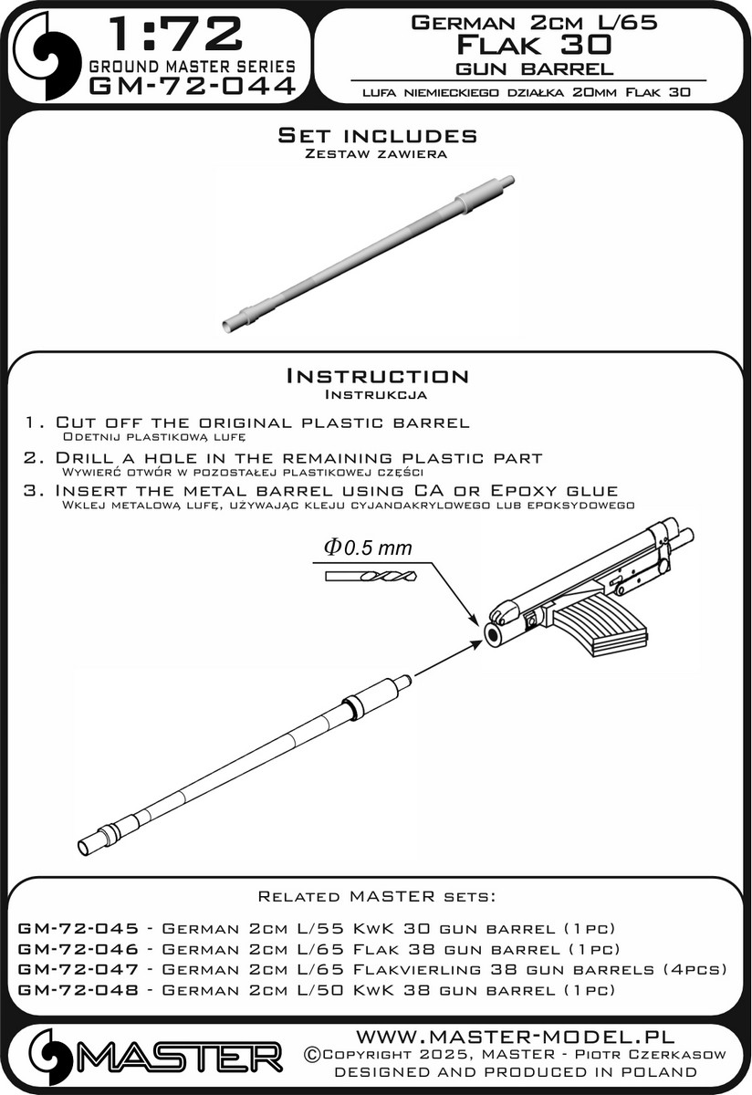 MASTER[GM-72-044]1/72 WWII ドイツ 2cm L/65 Flak 30対空機関砲砲身(汎用)