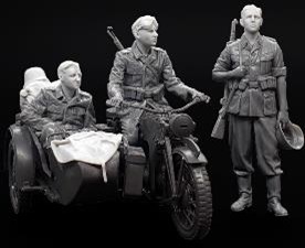 ARTOプロダクション[ARPAH35023]1/35 WW.II ドイツ KS600 サイドカー乗員用頭部w/アクセサリー(頭部3点 + アクセサリー)(タミヤ35384用)