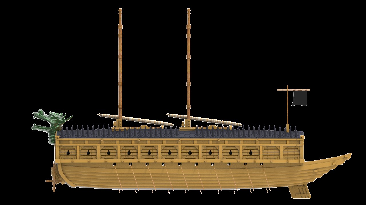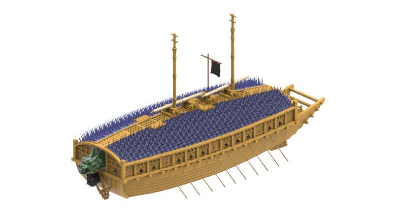 2022年公開の映画「ハンサン -龍の出現-」にインスパイアされた、朝鮮水軍の亀甲船(亀船)を再現するフルキットです。初回限定特典として、撃沈された関船2隻も付属します。