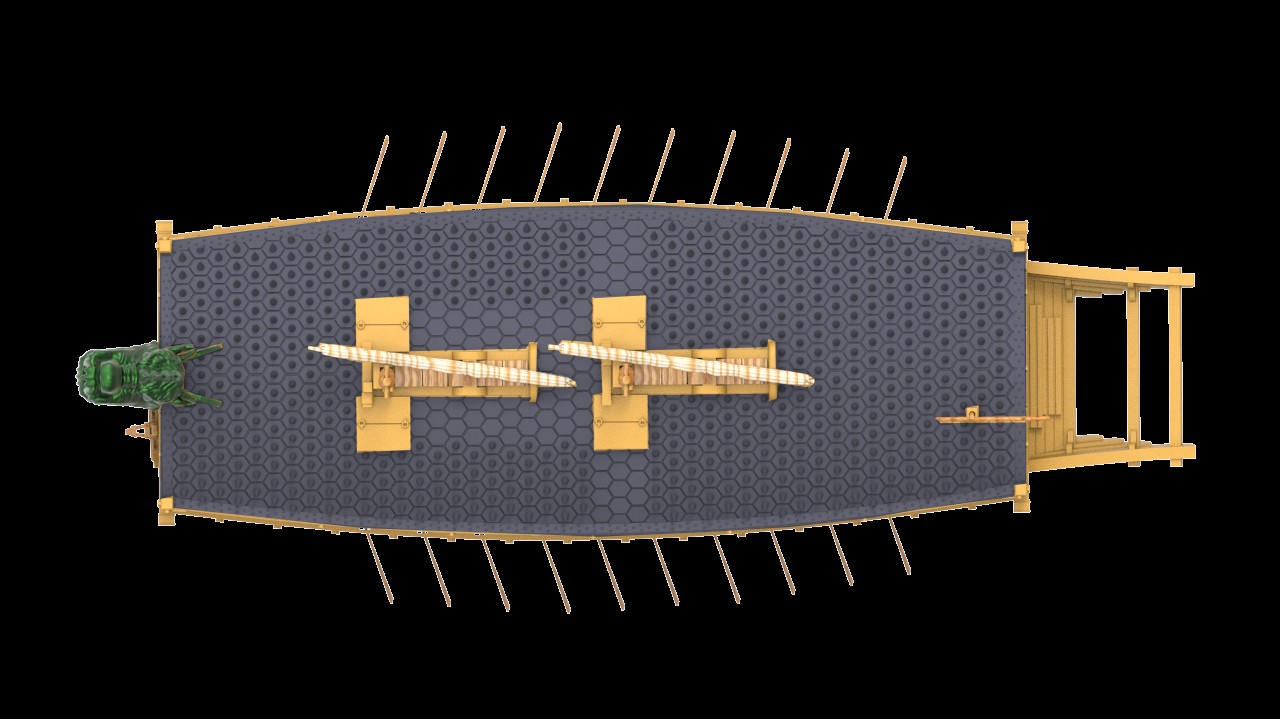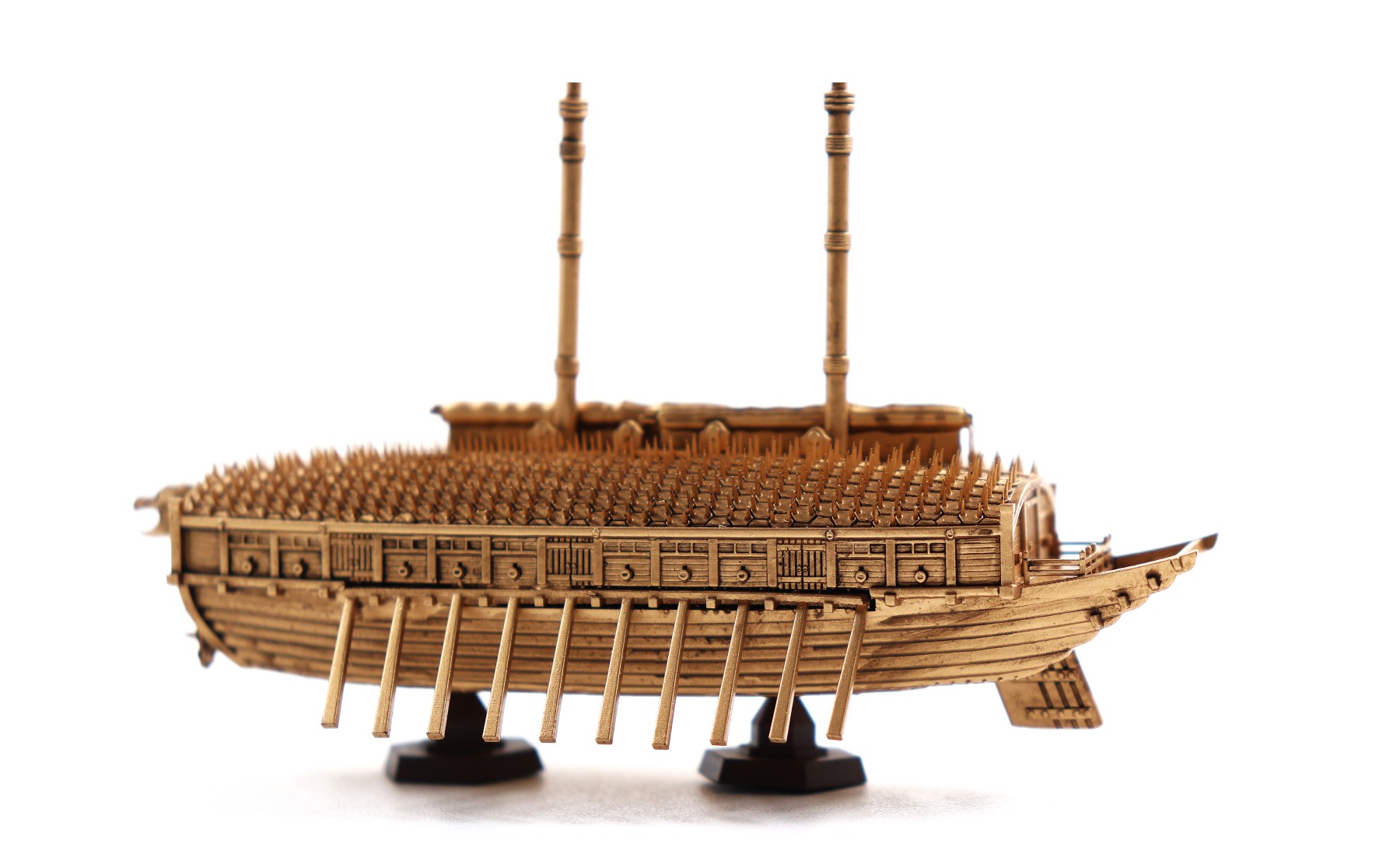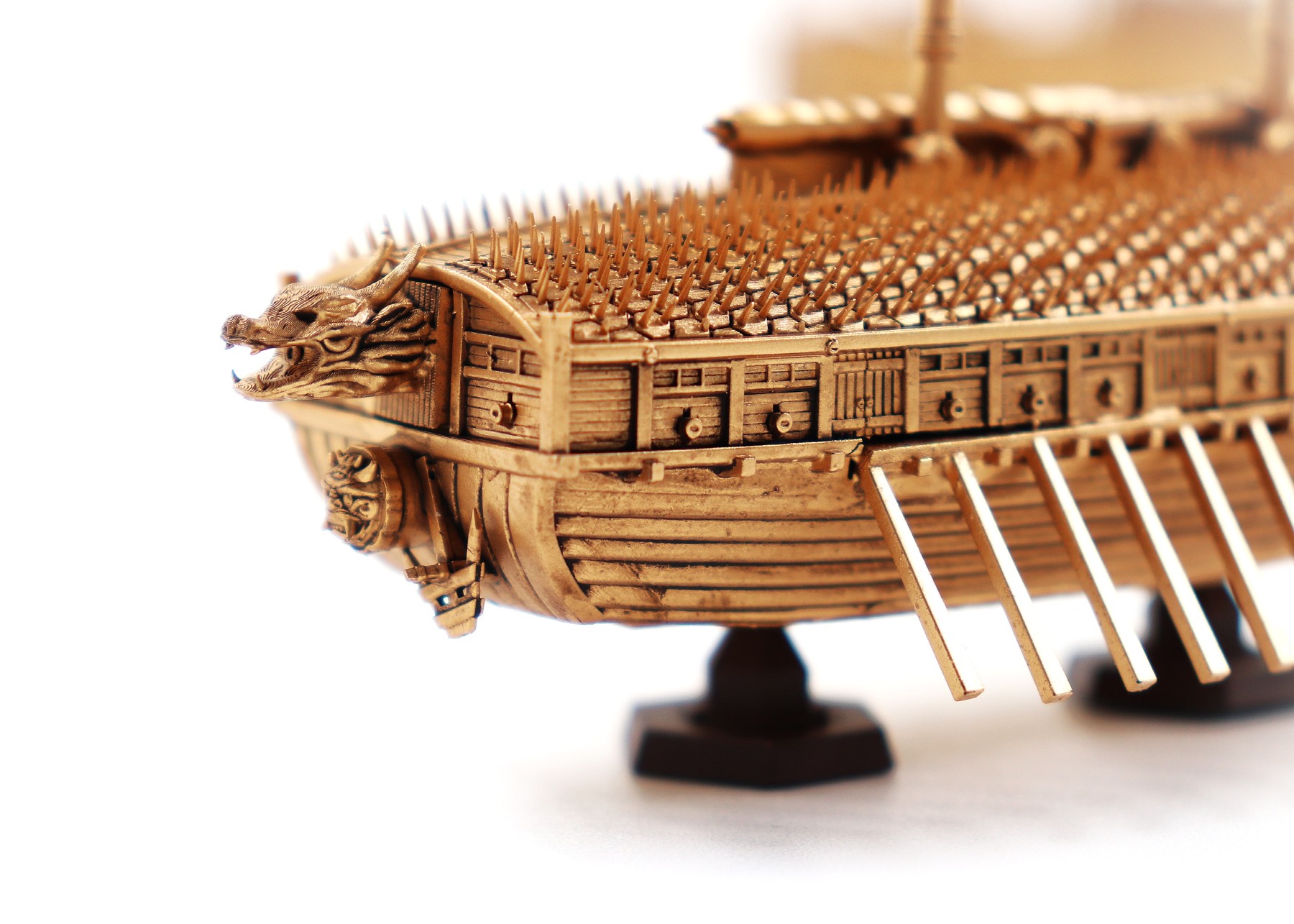 韓国の戦争記念館に展示されている亀甲船をモデル化しています。パーツは高精度の3Dプリント製で、組み立ても容易です。オールと旗はエッチングパーツで再現。マーキング用のデカールも付属します。