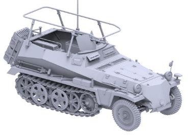 Sd.Kfz.250は第二次世界大戦中に1t ハーフトラックをベースに開発されたドイツ軍の軽装甲兵員輸送車の制式番号で、基本型の装甲兵員輸送車をはじめ、無線指揮車や弾薬運搬車、着弾観測車など様々な派生型が生産されました。Sd.Kfz. 250/3は大型無線機を搭載し、部隊の統制や空軍との連絡用の無線指揮装甲車です。「砂漠の狐」ことエルヴィン・ロンメルは、北アフリカ戦線で「グライフ (Greif)」と大きくマーキングされ、フレームアンテナを装備した車両を用いていました。